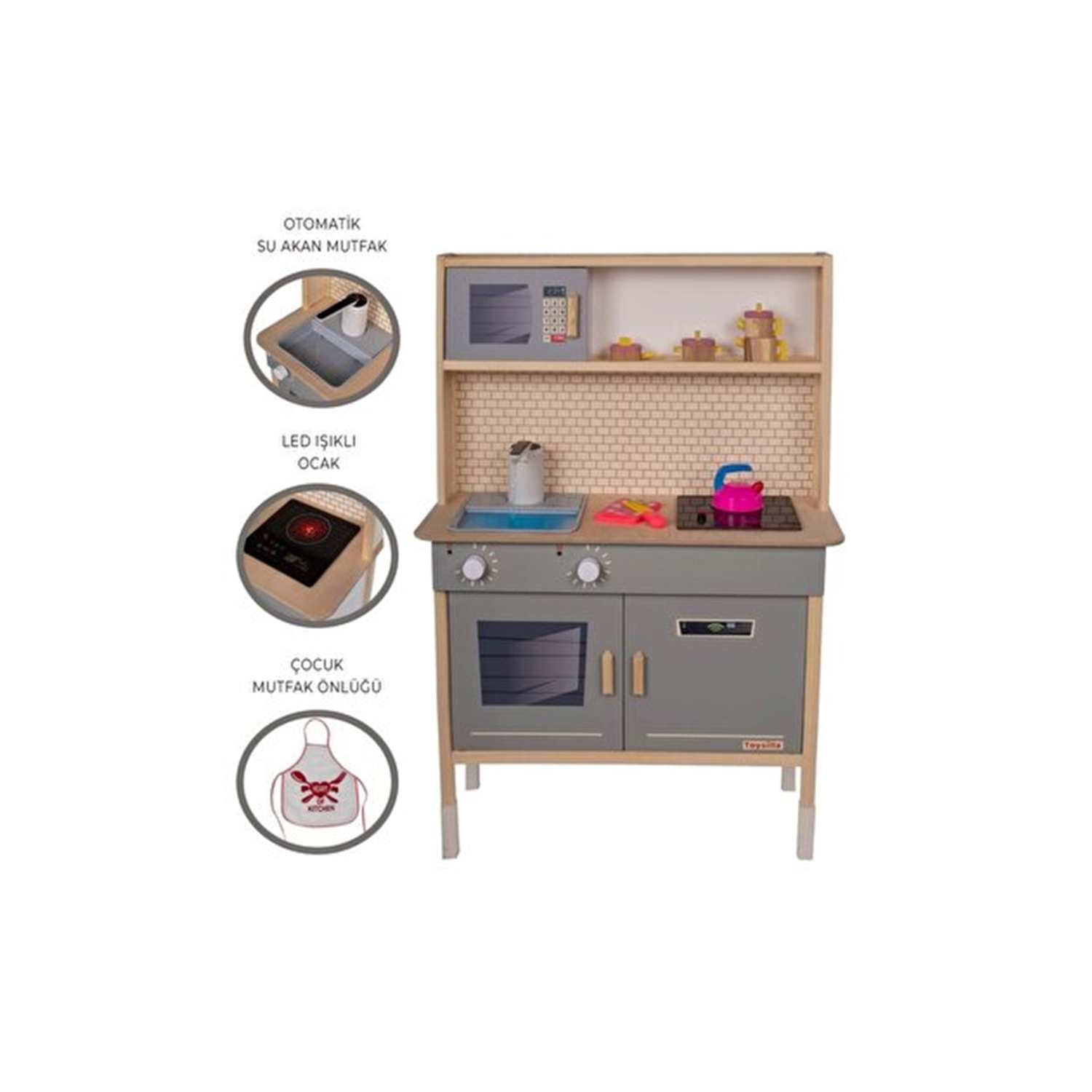 OKUTAN 1030 AHŞAP SU AKAN MUSLUKLU VE LEDLİ ÇOCUK MUTFAĞI